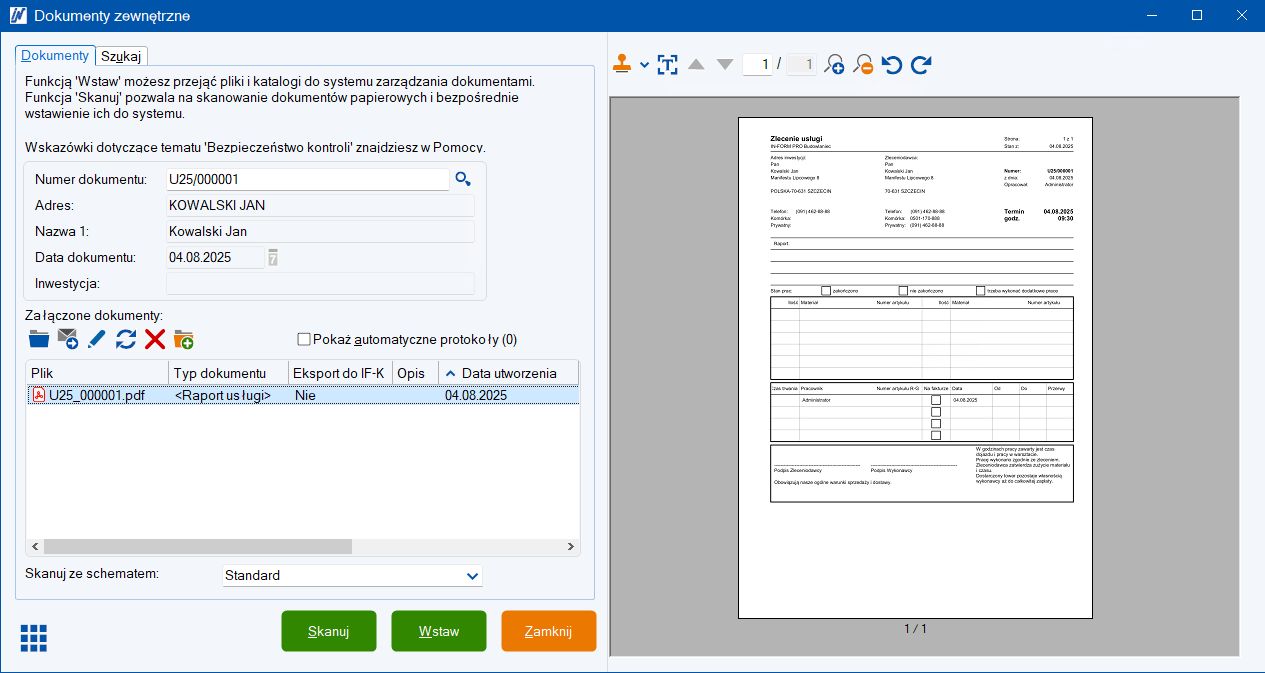 W pomocy programu IN-FORM (F1) znajdziesz szczegółowy opis dotyczący sposobu pracy z modułem dodatkowym Dokumenty zewnętrzne.